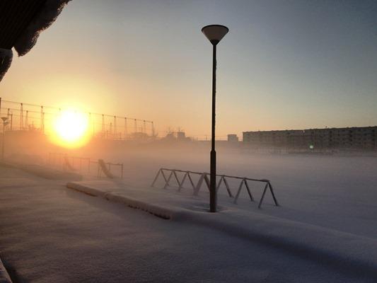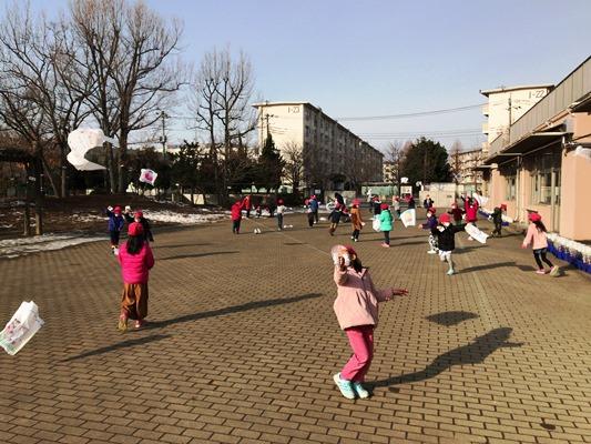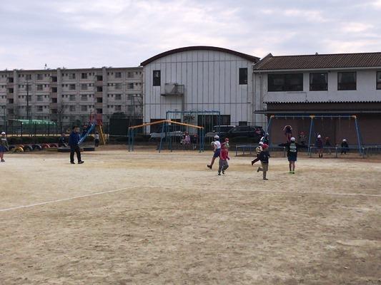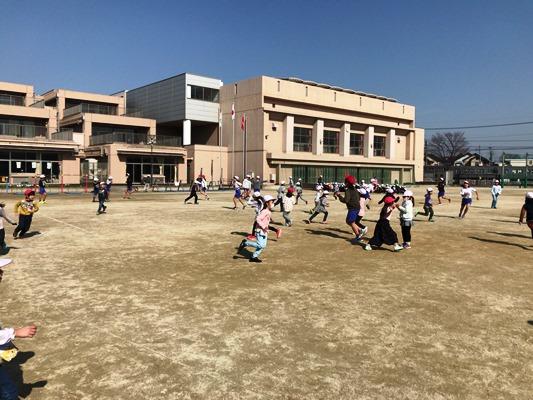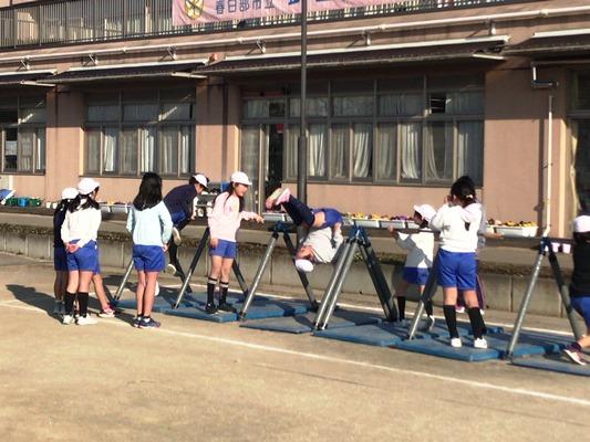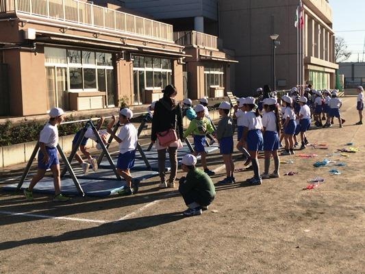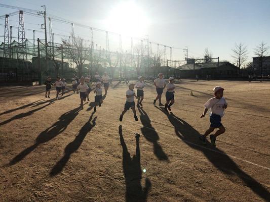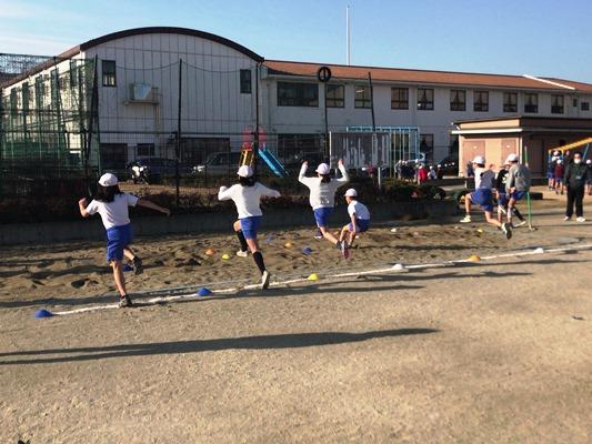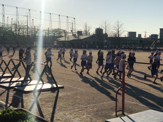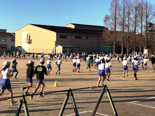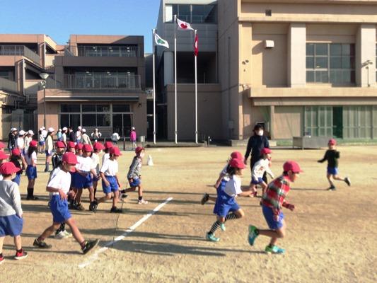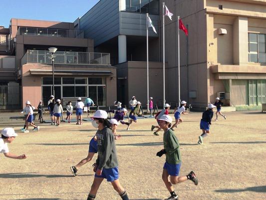霜柱が立つような冷え込んだ朝になりました。でも、子どもたちは寒さにめげず、運動を頑張っています。