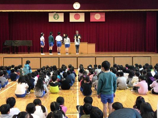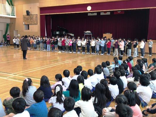 迎えられました。きれいな歌声、元気なあいさつに先生方も思わず笑顔にな