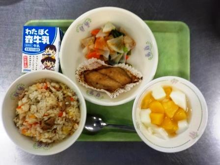 メニューは「ぶた肉とねぎ塩のまぜごはん・牛乳