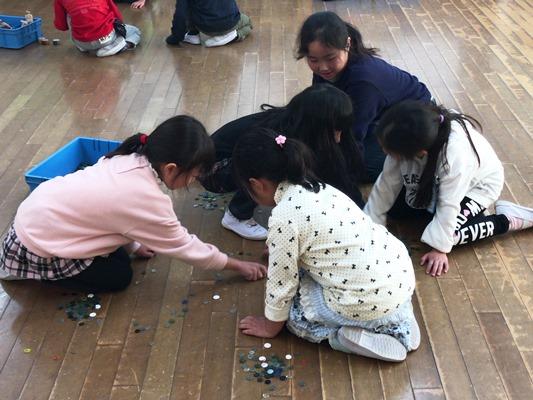 おはじきをする児童