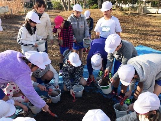 みんな慎重に土を入れています