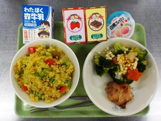カレーピラフ・ローストチキン・クリスマスサラダ・セレクトデザート・牛乳