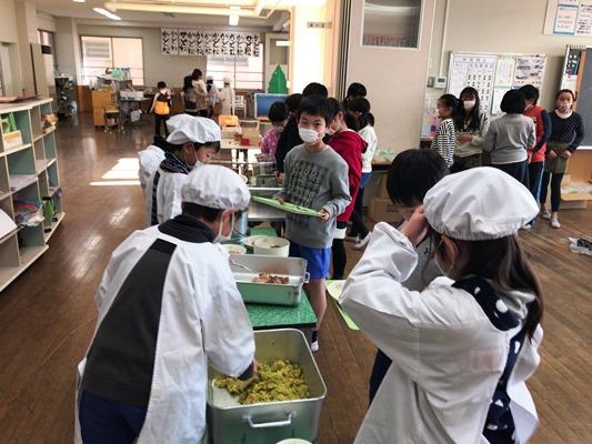 配膳の風景(4年生)