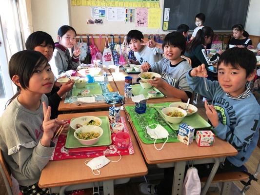 今日は、2学期最後の給食でした。クリスマスにちなんだメニューでした。みんなモリモリ、楽しそうに食べていました。ほとんど残らず食べていたようです。