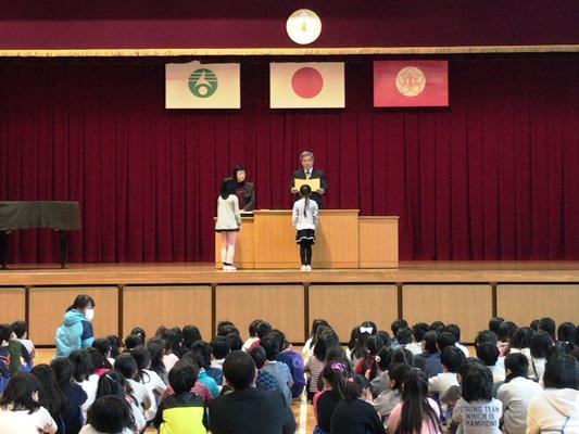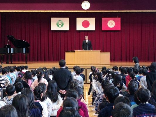 今日は、平成29年度・修了式でした。校長先生方からは、特に卒業生に対して、1年生から5年生が気持ちを込めて準備を進めたこと。式の中では、5年生が感動的に6年生を送り出せたことを高く評価してくれました。校歌も明るくさわやかに歌えました。春休みは、安全に気をつけて、準備を整えて新年度を迎えましょう。