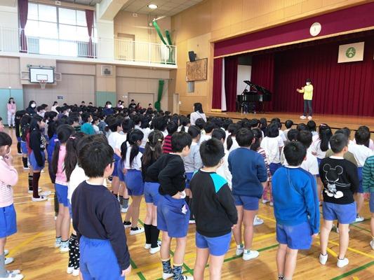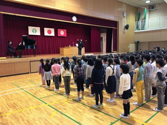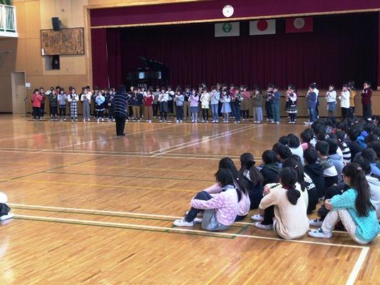 今朝は、音楽朝会でした。4年生が、合唱と演奏を紹介してくれました。全校では、「きよしこの夜」を合唱しました。体育館中にきれいな歌声が響きました。