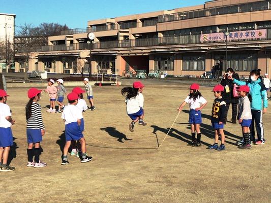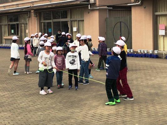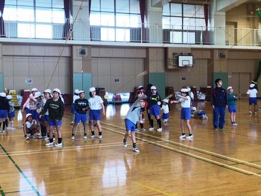 縄跳びをする6年生