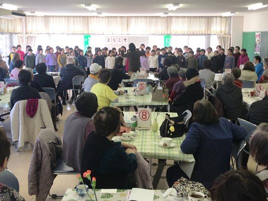 今日の昼休みに武里団地内の「ふれあい喫茶」に4年生がお邪魔しました。4年生は、3曲の歌と演奏を披露しました。アンコールの「きよしこの夜」では、地域の方も一緒に口ずさんでいました。最後に、子どもたちから、サンタの折り紙を一人一人にプレゼントしました。地域の方に大変喜んでいただけました。