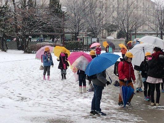 暖かな春の日差しを浴びて、三学期最後の登校となりました。元気にあいさつをして登校しました。