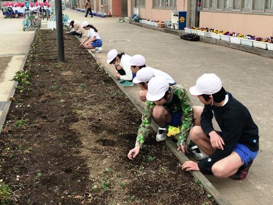 栽培委員が面倒をみている花壇