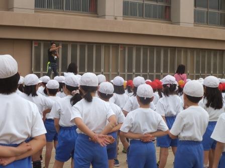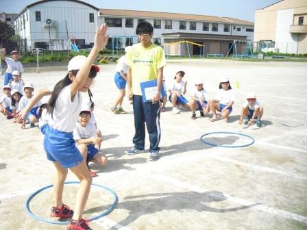 まず、運動委員会の児童が手本を演じ、説明します。