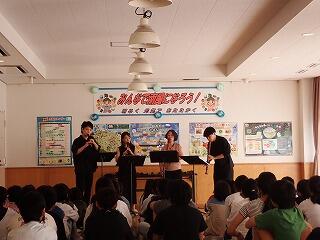アーティストが学校にやってくる!」と題したリコーダーアンサンブル演奏会に参加しました。