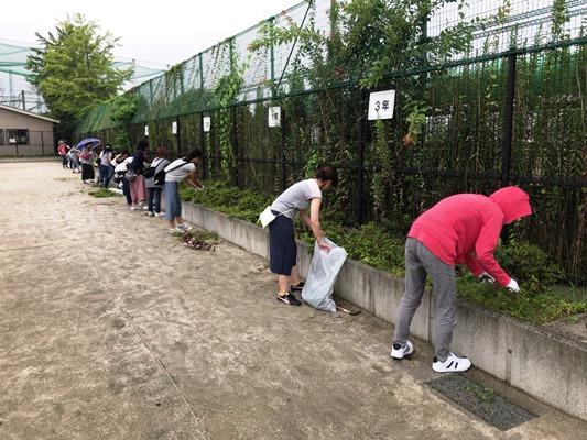 今日は、「愛校の日」でした。小雨の降る中でしたが、たくさんの保護者の方に来校していただき、校庭の草取りをしました。短時間でしたが、南側のフェンス際がきれいになりました。ご協力、ありがとうございました。