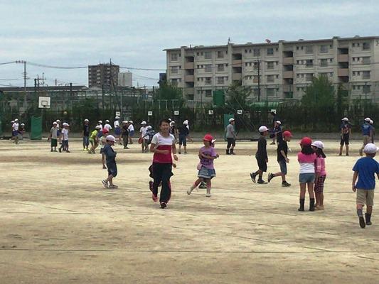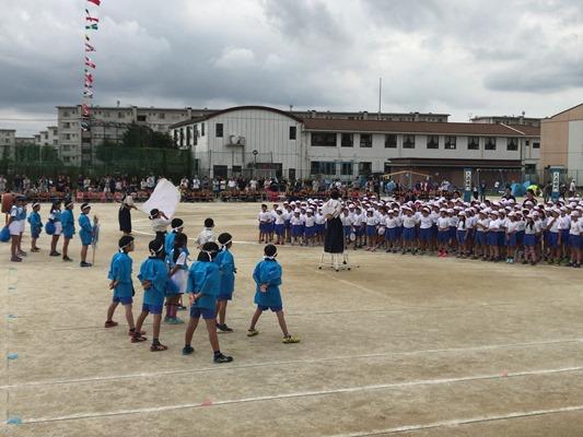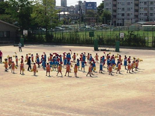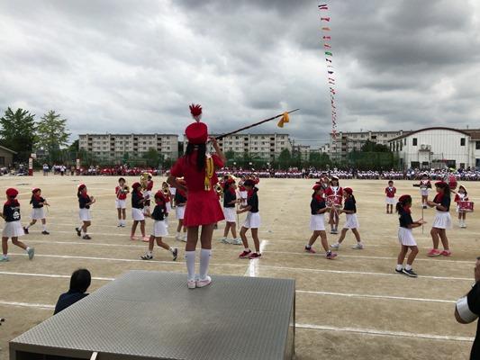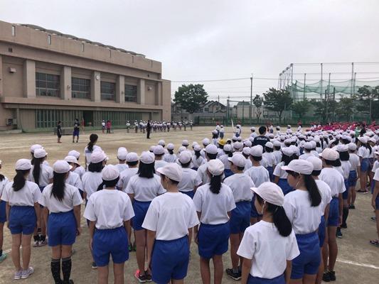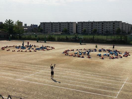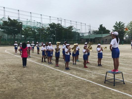 今日は、朝から運動会の第1回全体練習がありました。今日は、開会式と閉会式の練習です。金管バンドクラブの人たちによる演奏にのせて、行進の練習をしました。初めは、そろわない所もありましたが、練習しているうちにかなり上手になってきました。