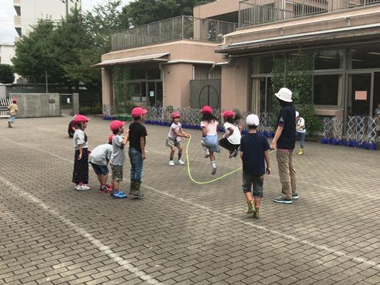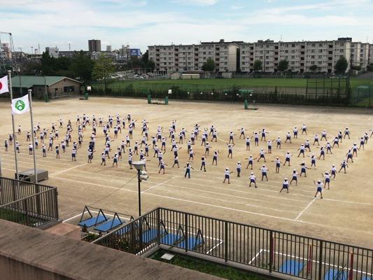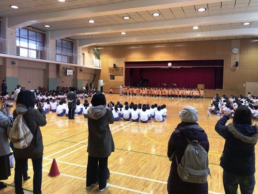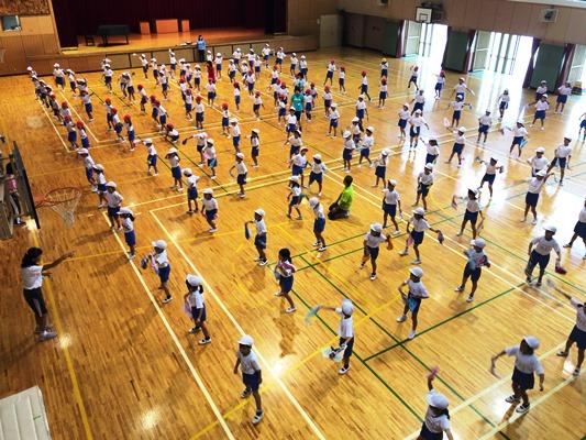 今朝は、体育朝会がありました。今日の内容は、「リズム縄跳び」です。全校児童が曲に合わせて一斉に跳びます。途中で、縄にかからないで跳んでいる児童もいっぱいいます。体力がつきますね。