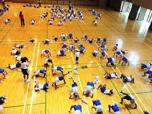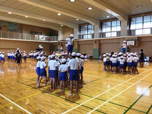 今日は、朝から雨が降り、5年生、6年生は体育館で組体操の練習をしました。なかなか難しそうな演技でしたが、みんなが力を合わせて、完成することができました。ケガのないように集中して練習しましょう。