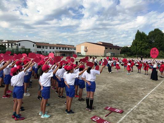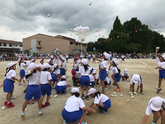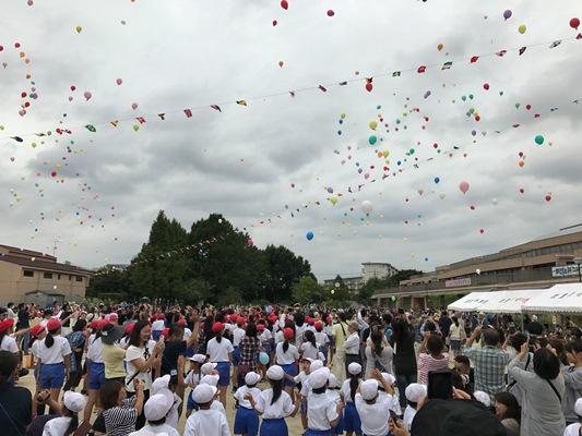 台風の接近で天候が心配されていましたが、無事、運動会が行われました。みんな精一杯、競技に参加していました。今年は、創立15周年ということで、みんなでお祝いのバルーンリリースをしました。