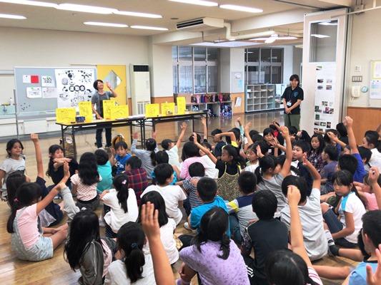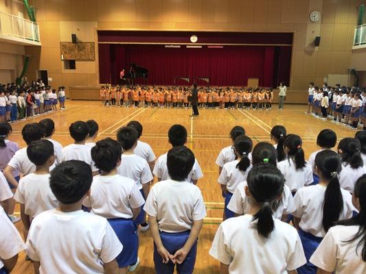 今朝は、全校朝会がありました。最初に、校長先生からは、「まわりで困っている人がいたら、何をしてあげられるのか考え、行動しよう。」というお話がありました。また、「二学期の学習のまとめをしよう。」というお話もありました。校長先生が手品を見せてくれて、楽しめました。
