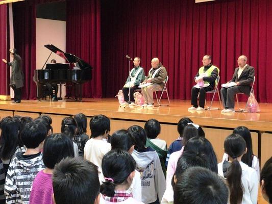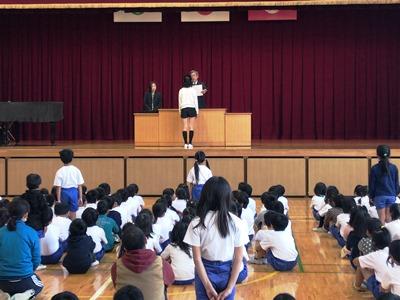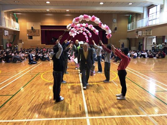 校歌と「ありがとう♪」の歌のプレゼントをしました