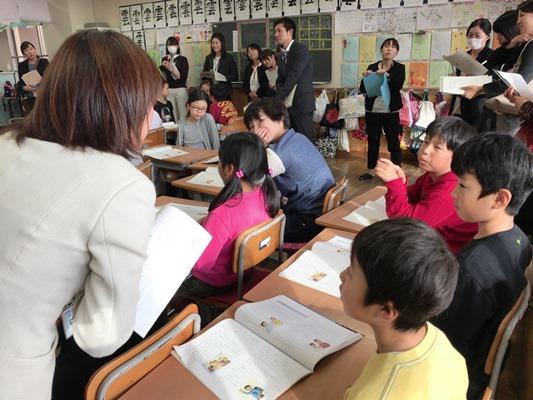 今日は、1、4、5年生の授業参観がありました。多数の保護者の方にご参会いただきましてありがとうございます。1年生は、地域の方に昔遊びを教えていただきました。親子で一緒に遊ぶ場面もありました。