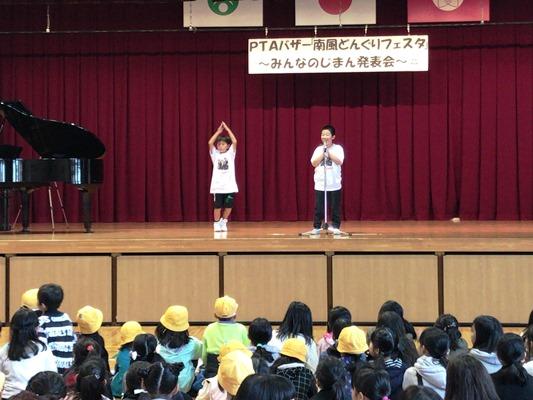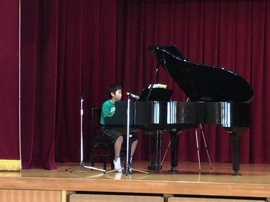 今朝は、1年生の合唱の発表がありました。「夢をかなえてドラえもん」という歌を合唱しました。1年生らしい、元気で可愛らしい歌声を聴かせてくれました。