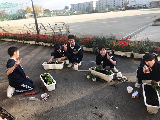今日のお昼の時間「どんぐりタイム」に栽培委員がパンジーの苗を植えました。花の色合いを考えて、丁寧に植えていました。来年の卒業式や入学式に華を添えてくれるでしょう。