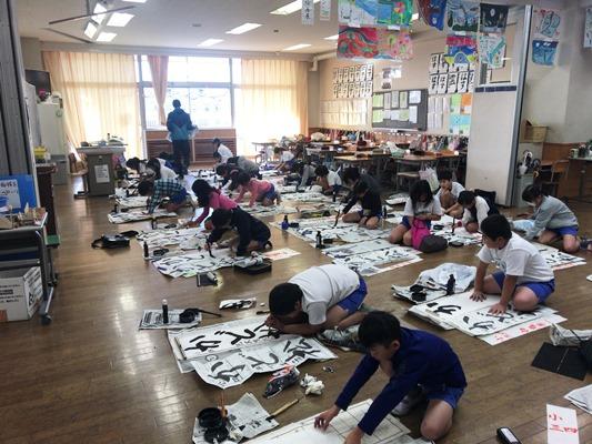 今日は、朝のうちに4年生の「校内書きぞめ展」に向けて、競書会が行われました。どの児童も真剣に集中して取り組んでいました。