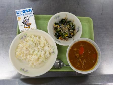 今日の給食は「麦ごはん・カレールウ・牛乳