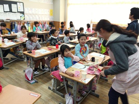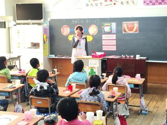 今日は、5時間目に1年生の教室で「歯磨き教室」が行われました。養護の先生が歯の健康、歯みがきの仕方について話がありました。給食の後、歯みがきをしましたが、薬でチェックしてみると意外と歯の汚れが落ちていないことに気づきました。歯の大切さに気付いた時間でした。