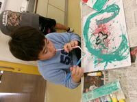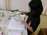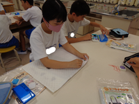 4年生が図工室で図工の学習を行いました。絵の具の様々な技法を練習していました。ビー玉、ストロー、カップ、スポンジ、ティッシュ、歯ブラシなど、色々な道具を使いながら絵を描いていました。今回学んだ技法を使ってどんな絵が描きあがるのでしょうか。楽しみです。