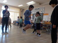 どんぐりタイムでは縄跳びに取り組んでいます。運動委員を中心にリズム縄跳びを全員で跳んでいます。曲に合わせるとリズムよく跳べるので、普段よりもたくさん跳べている子が多いようです。「コツコツときたえた体は宝物」です。寒さに負けず体を鍛えましょう。