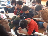 2月13日(火)に近代美術館の講師の方をお招きし、6年生を対象に日本画鑑賞授業を行いました。昔の日本画は、紙や絵の具などの材料から、使う道具まで全て自然にあるものでできていることなどを知り、感銘を受けていました。同じ絵をみても人によってとらえ方が違い、そこに面白さがあることを教えて頂きました。