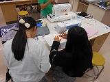 5年生は家庭科でエプロンつくりに取り組んでいます。