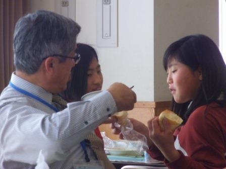 卒業を間近に控えた6年生。小グループで校長先生との会食が始まりました。会場が校長室ということもあってか、最初は緊張気味でしたが、校長先生と食後のゲームを行うなどで盛り上がり、隣の職員室まで楽しそうな歓声が響いていました。
