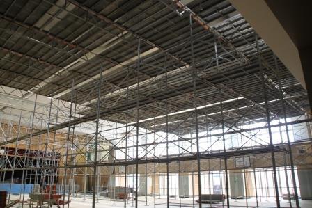 体育館の天井耐震工事は、順調に進んでいます。