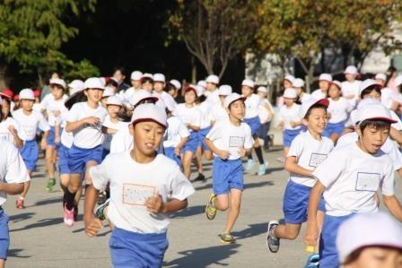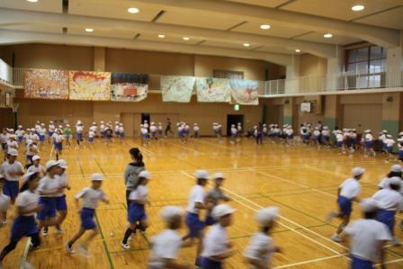 武里南小の子どもたちは、全校で元気いっぱいに、朝マラソンです。