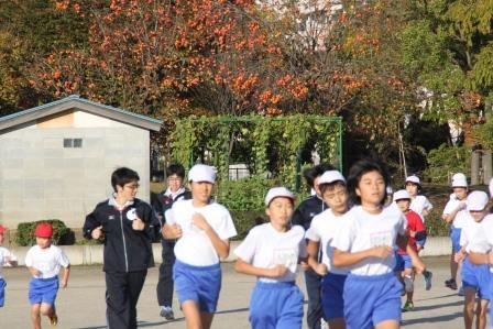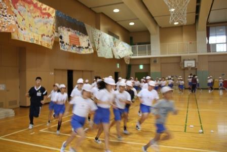 朝、全校児童に自己紹介した後、早速、全校朝マラソンに、武里南小の子どもたちと一緒に取り組みました。