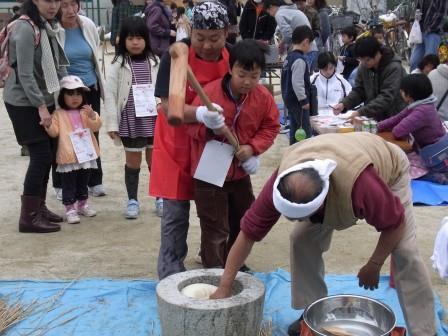 お餅つきでは、大きな臼のほかに、子供用に小さな石うすも用意され、