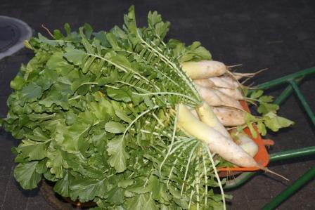 今年も、立派なダイコンがたくさん採れました。その一部を、給食の食材として、全校みんなでおいしくいただきます。
