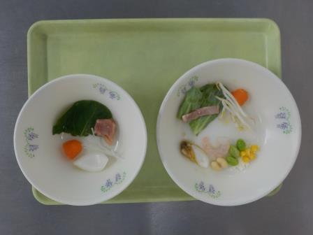 今日の給食は「コーンラーメン・中華麺・牛乳・春巻き