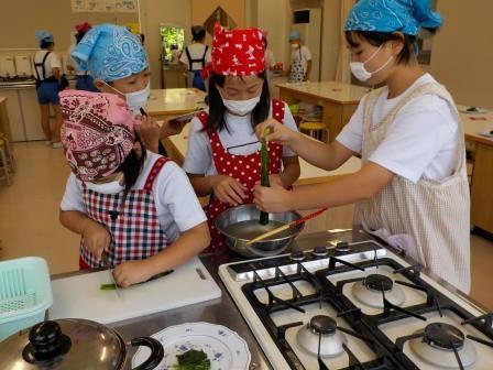 自分たちで調理した「ほうれん草のおひたし」はおい