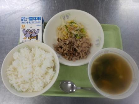 今日の給食は「ごはん・牛乳・ビビンバ(肉・野菜)