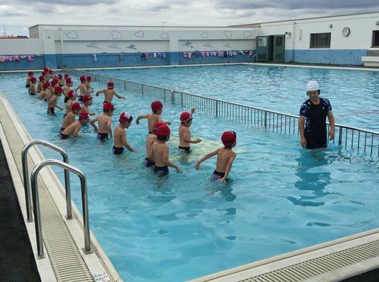 今日は、1年生の小学校で初めての水泳学習がありました。やや気温が低く、水が冷たい感じがしましたが、先生の号令に合わせて元気よく学習ができました。安全に気をつけながら、水に慣れて泳ぐ練習を頑張ってください!