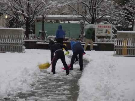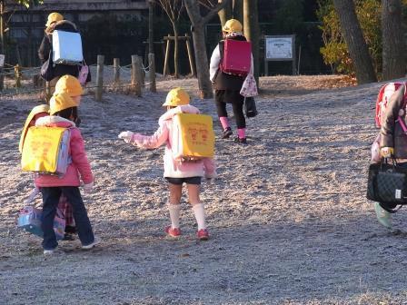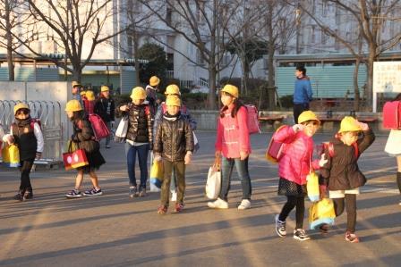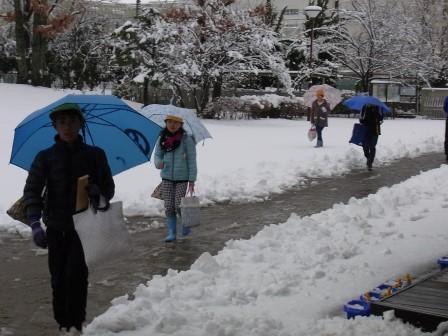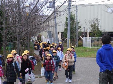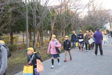 積もった雪をしっかり踏みしめて、武里南小の子どもたちは、