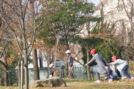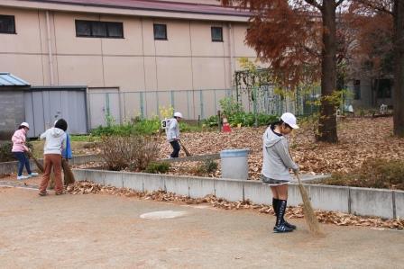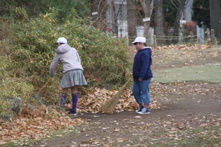大量の落ち葉を、子どもたちが掃き掃除してくれました。