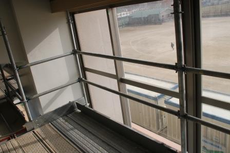 武里南小では、体育館天井の耐震工事を12月始めから1月末まで行っているため、