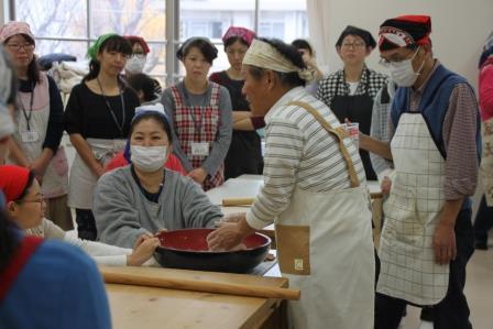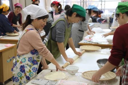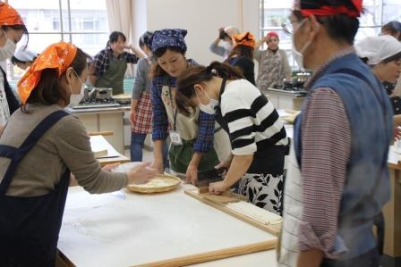 粉を練って、伸ばして、切って、ゆでるといった工程を、体験しました。