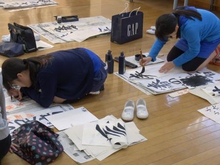 元気いっぱいに学校を盛り上げています。書きぞめ代表者練習 がんばっています