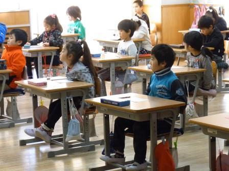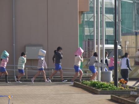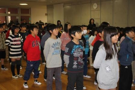 校庭にまだ凍っている箇所があるため、室内で行います。