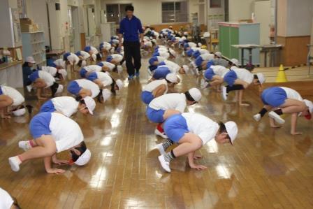 前で先生や運動委員会の子どもたちが見本を見せてくれています。